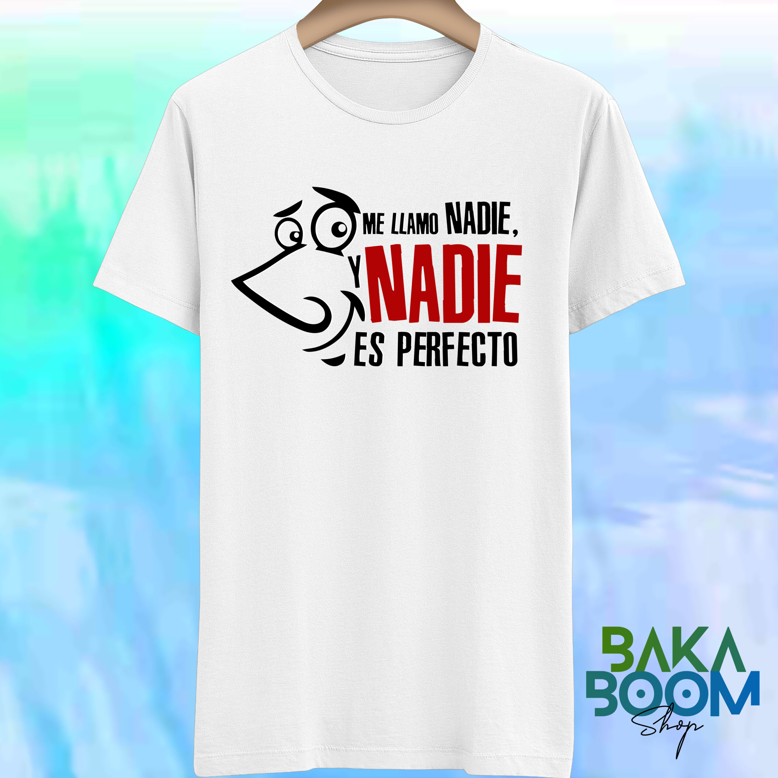 Camiseta unisex de manga corta, modelo CAMISETA NADIE ES PERFECTO, de cuello redondo con las costuras reforzadas en la parte de los hombros y el cuello, convirtiéndolo en un producto ideal para el día a día.