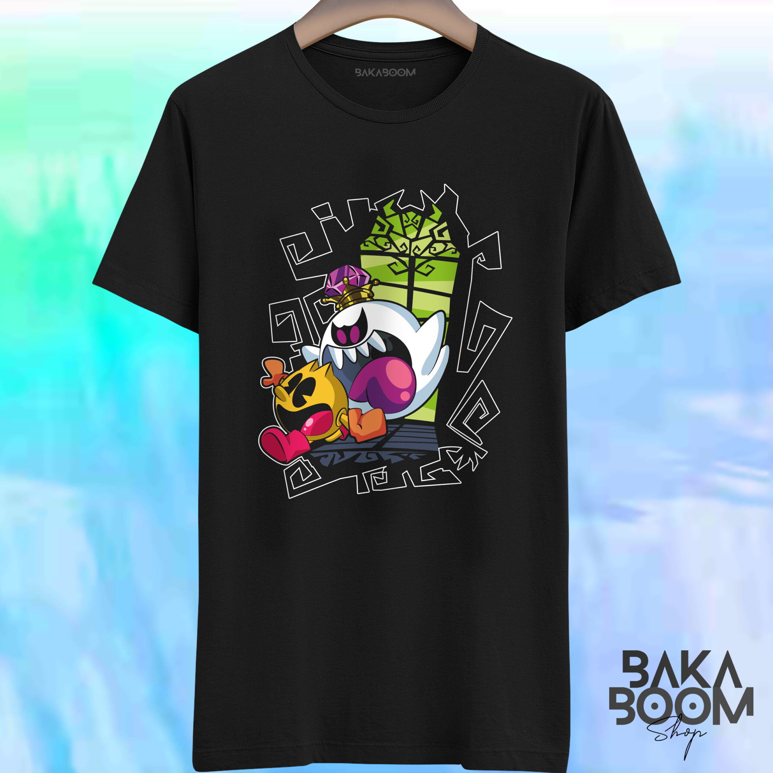 Divertida camiseta del famoso comecocos, o Pac, para los amigos, en una versión simpática de terror fantasmagórico, para cualquier amante de los videojuegos, tengas la edad que tengas¡¡¡