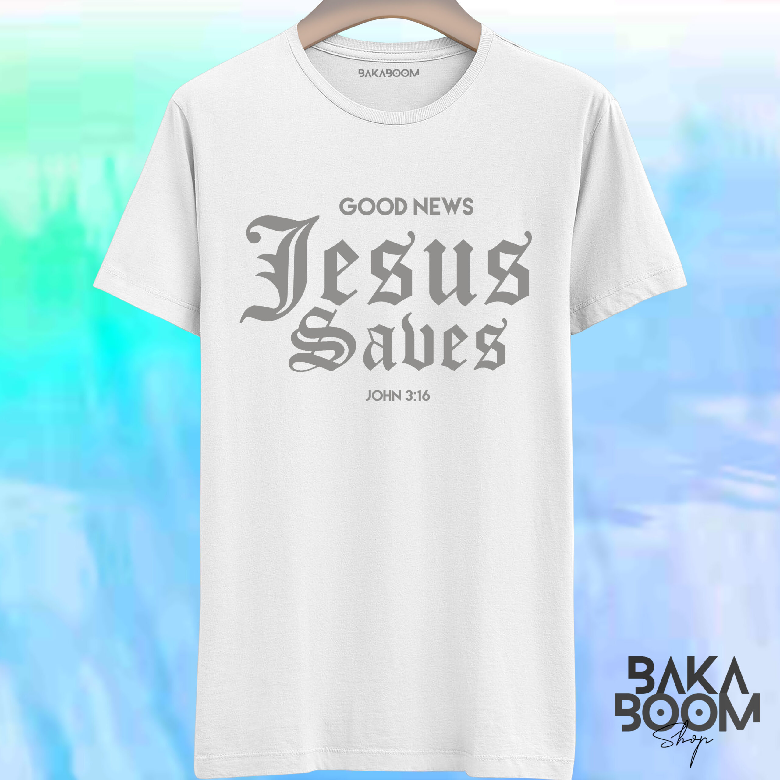 Camiseta Cristiana JESUS SAVE, con tipografía contemporánea retro, con un claro mensaje de esperanza, Jesús Salva¡¡¡