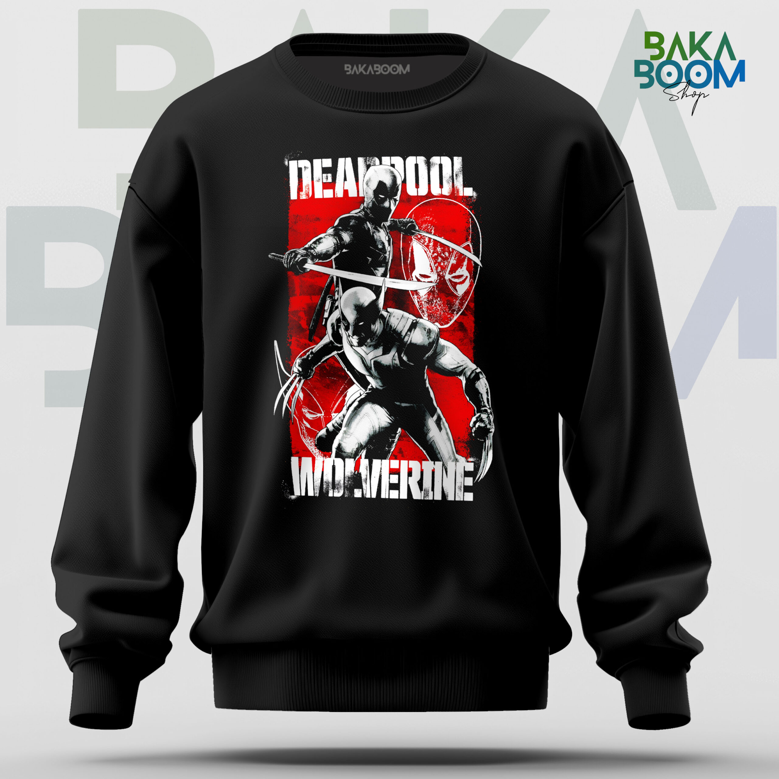 SUDADERA DEAD LOBEZNO, Estilo clásico con puños y cinturilla con punto canalé 1×1 con elastano. Material: 50% algodón / 50% poliéster, felpa perchada, 280 g/m².