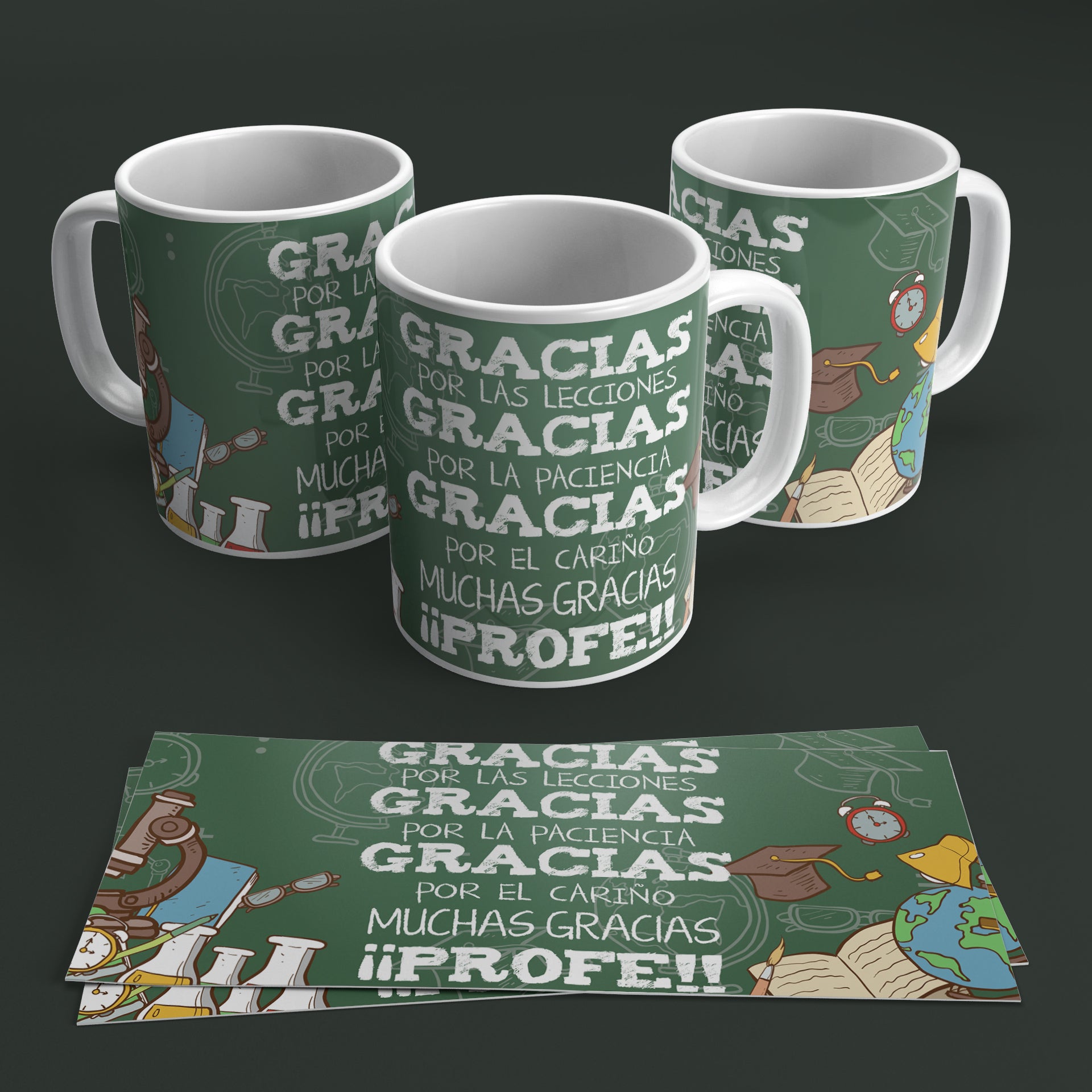 Muestra tu gratitud con la TAZA GRACIAS PROFE. Ideal para regalar a ese profesor favorito, con un mensaje de agradecimiento único y original. ¡Triplemente perfecta ! Colores vivos y llamativos para un regalo original.