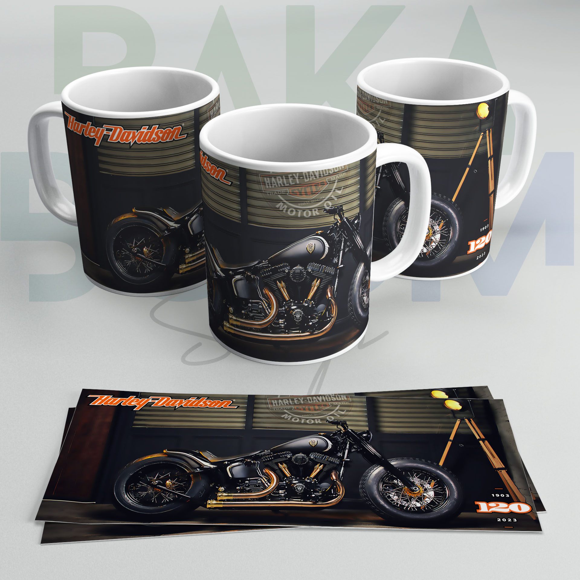 Fabricada con materiales de alta calidad, la taza presenta un diseño exclusivo que rinde homenaje a la rica historia de la marca. Incluye el icónico logotipo de Harley Davidson y detalles que destacan los 120 años de legado en la industria. Su acabado elegante y duradero asegura que esta pieza no solo sea ideal para el uso diario, sino también un recuerdo preciado para cualquier fanático de las motocicletas.